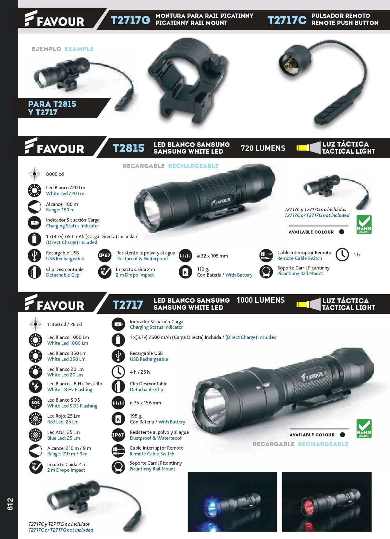 Luz táctica FAVOUR con led blanco de Samsung de 1000 lumens