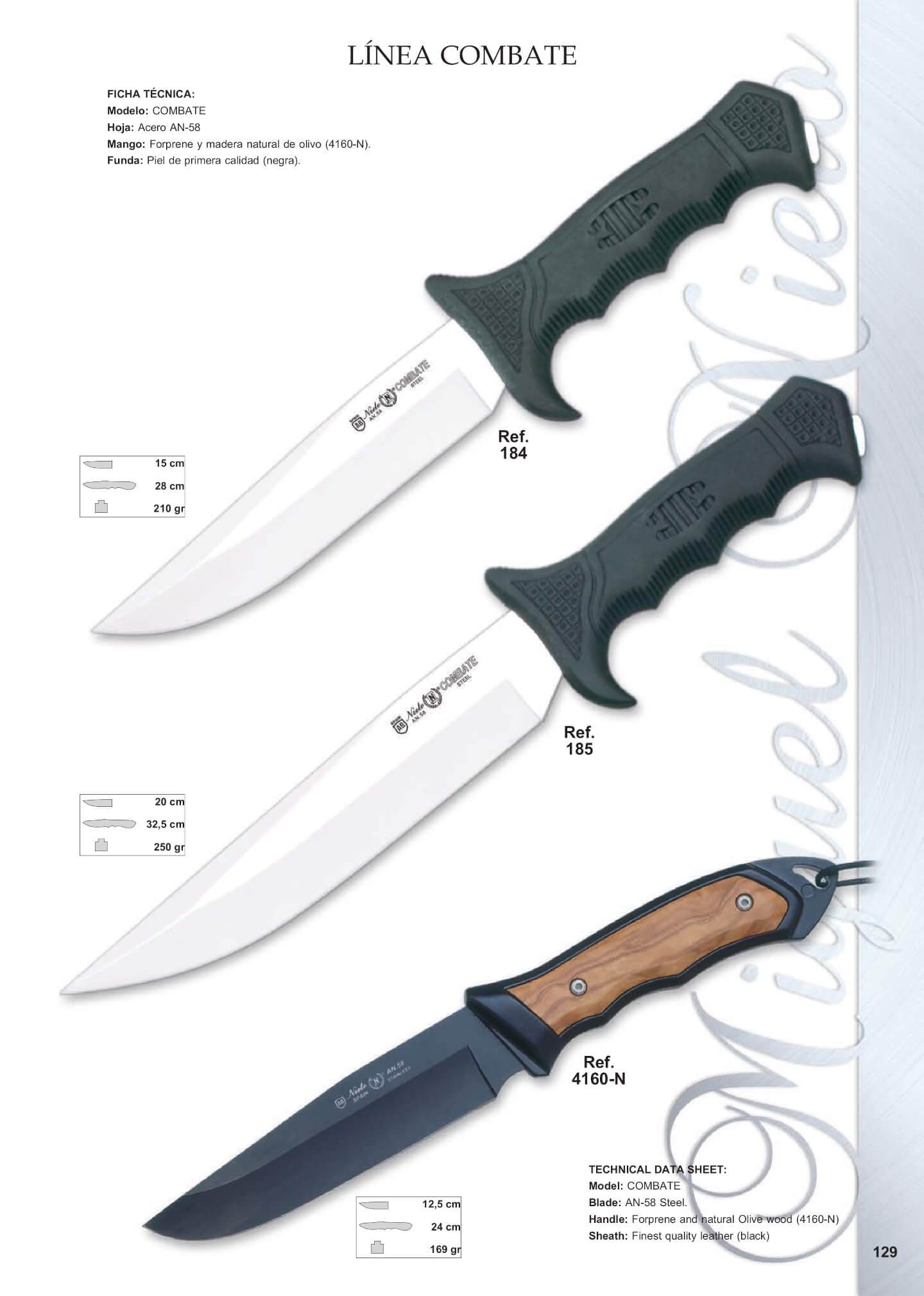 Mango: madera natural de Olivo. Hoja: 12.5 cm. Longitud tota 24 cm. Peso 169 gr.