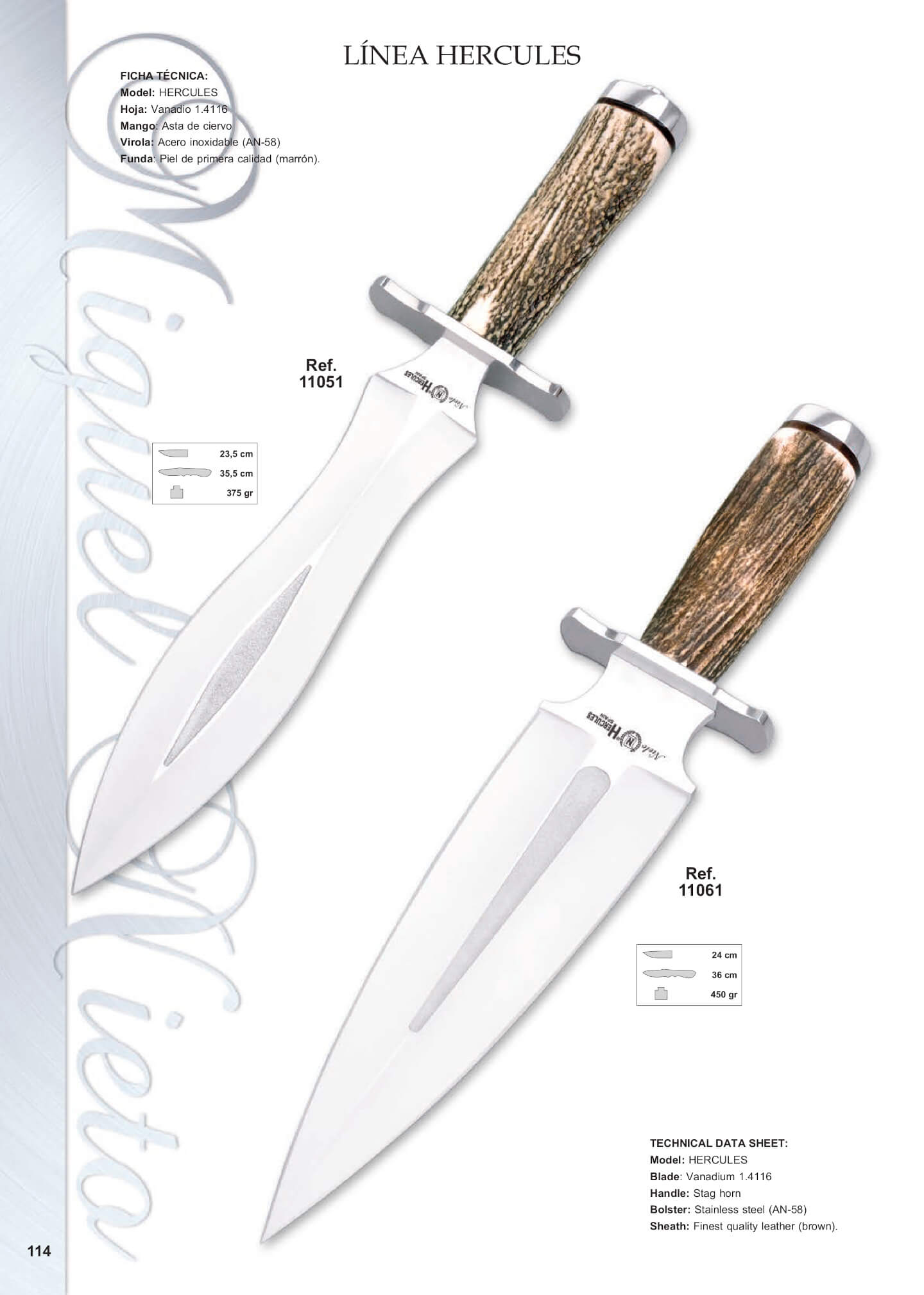 Longitud de hoja: 23.5 cm. Longitud total: 35.5 cm. Peso: 375 grs.