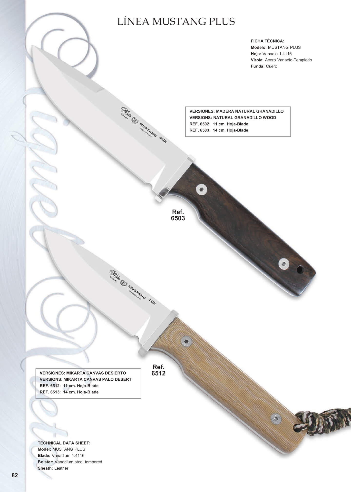 Cuchillos de caza y campo de la línea Mustang+ de acero Vanadio 1.4116.