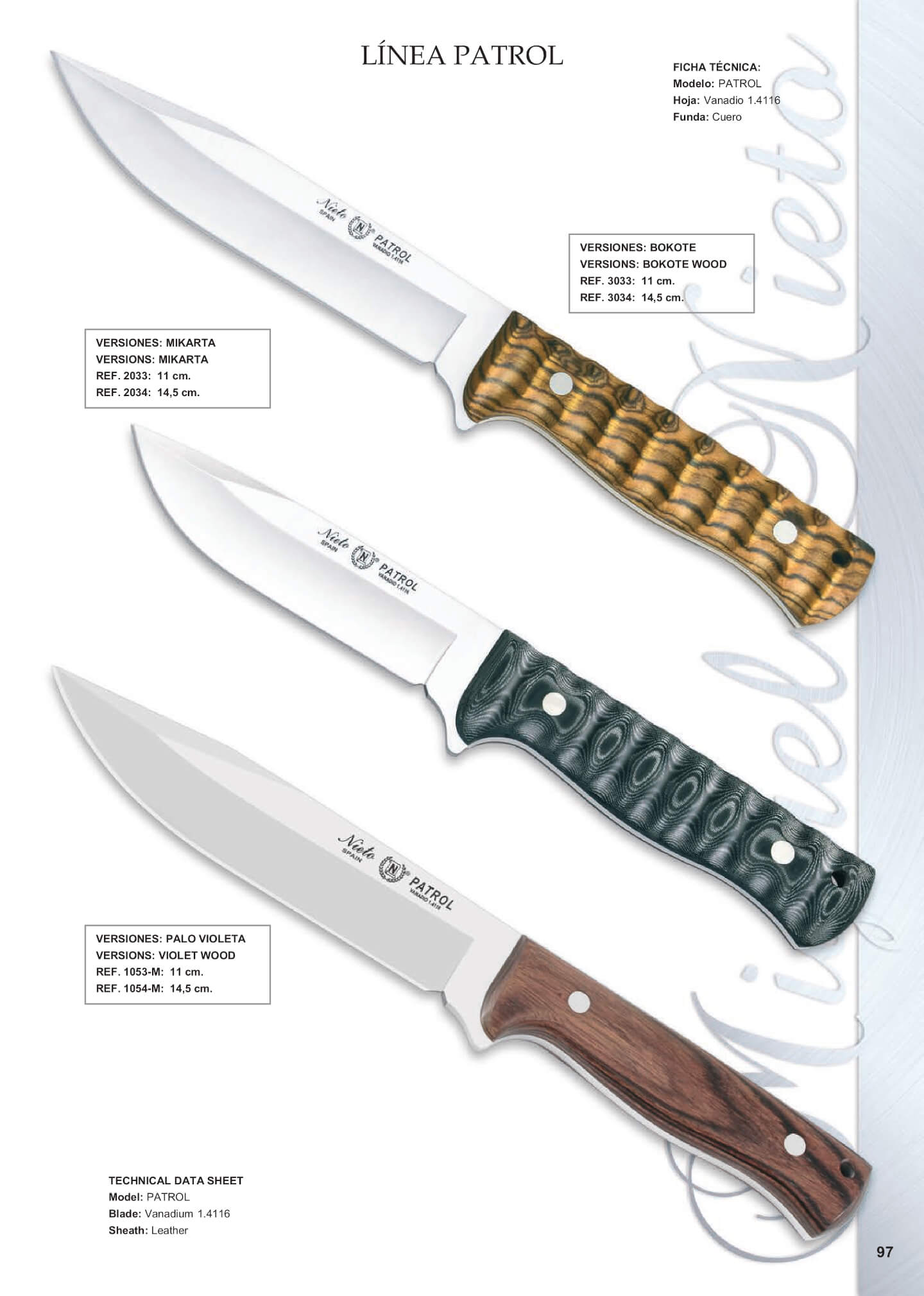 Hoja: 11 cm. Longitud total: 22 cm. Peso: 190 grs. Mango: Mikarta.