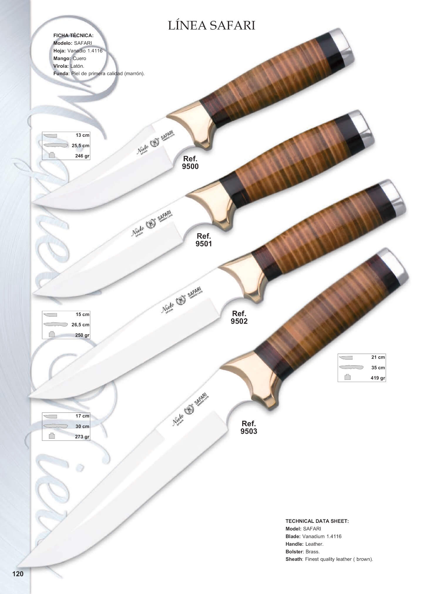 Hoja de acero Vanadio 1.4116Mango de cueroFunda de piel de primera calidad (marrón)Virola de laton.