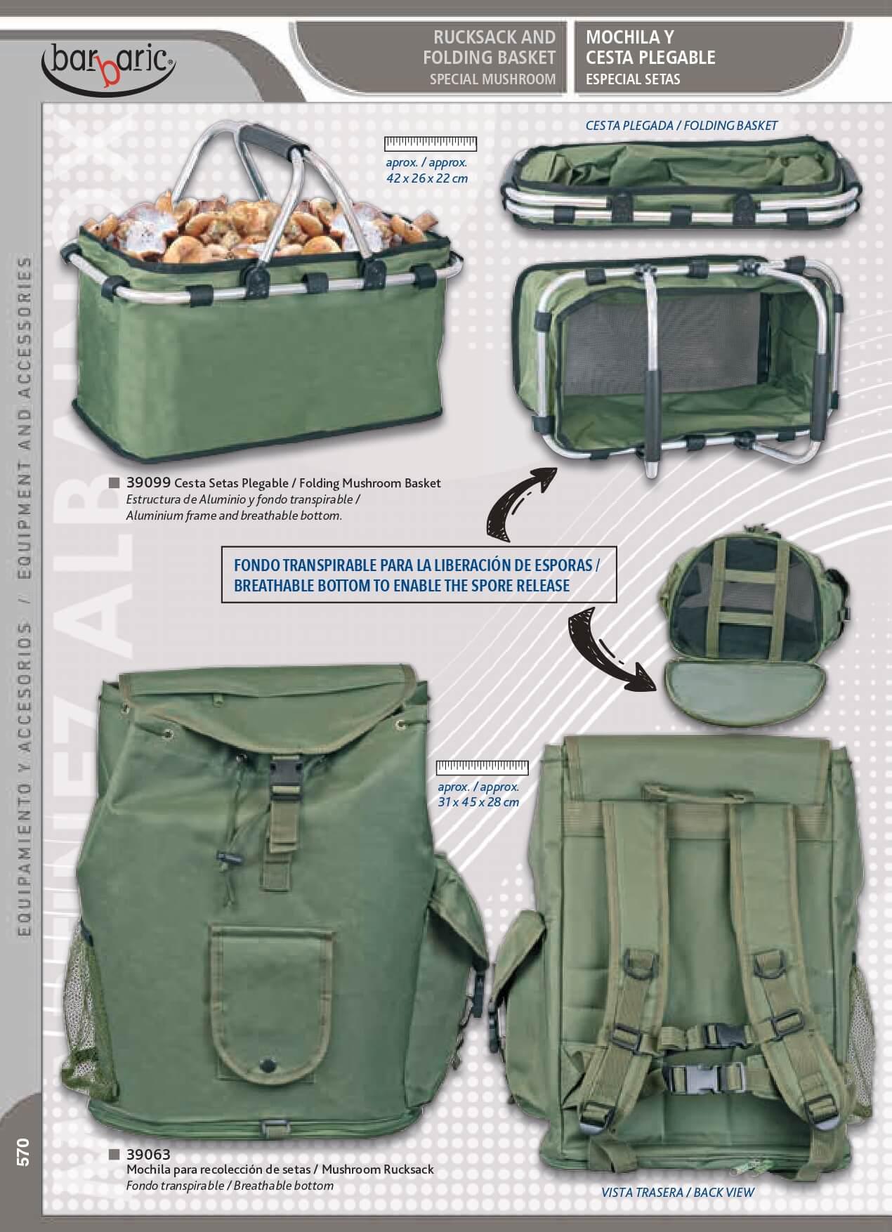 Mochila para recolección de setas con fondo transpirable