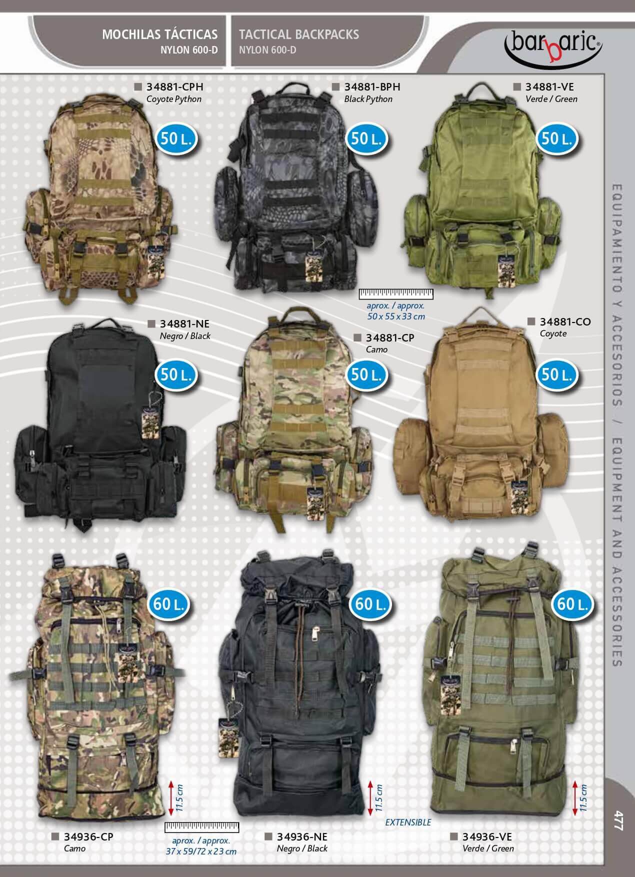Mochila negra con capacidad de 60 litros de nylon de color negro