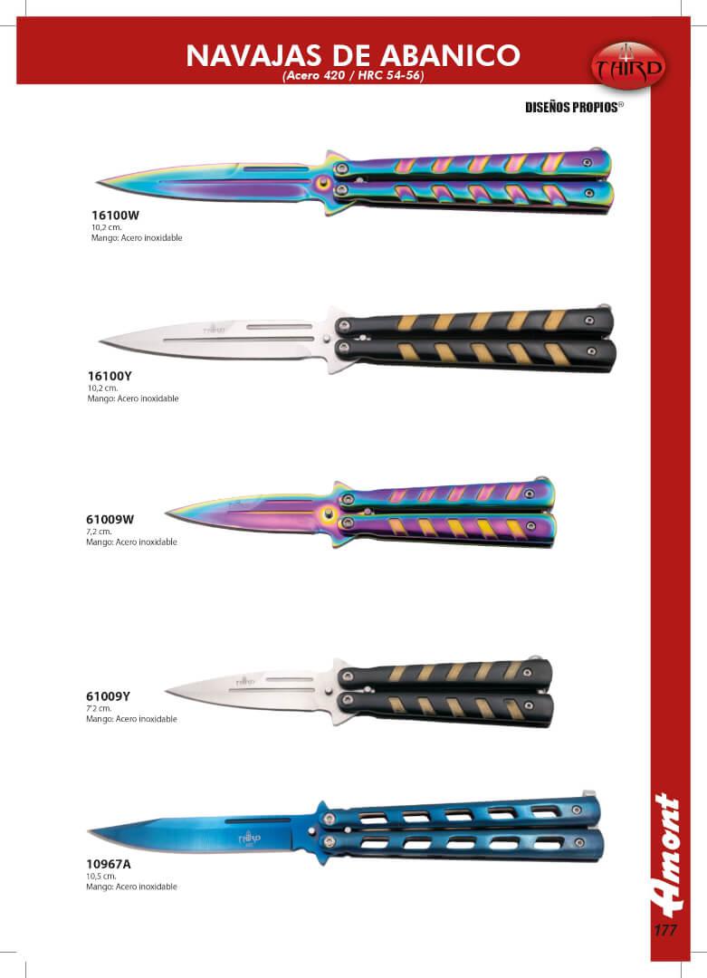 Navaja mariposa de 7.2 cm con mango de acero inoxidable multicolor.