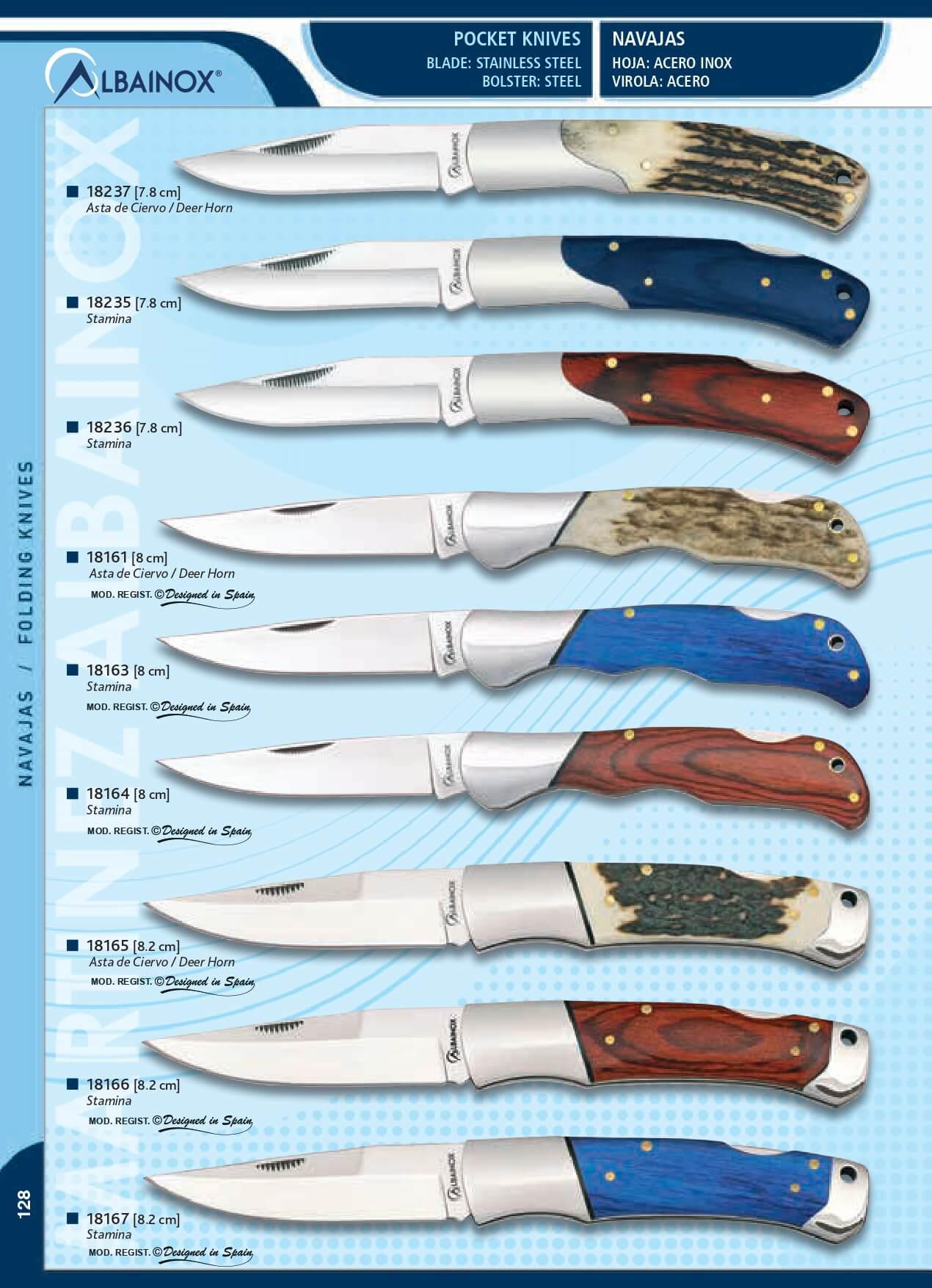 Navaja de Albainox con cachas de stamina azul, virola de acero y ...