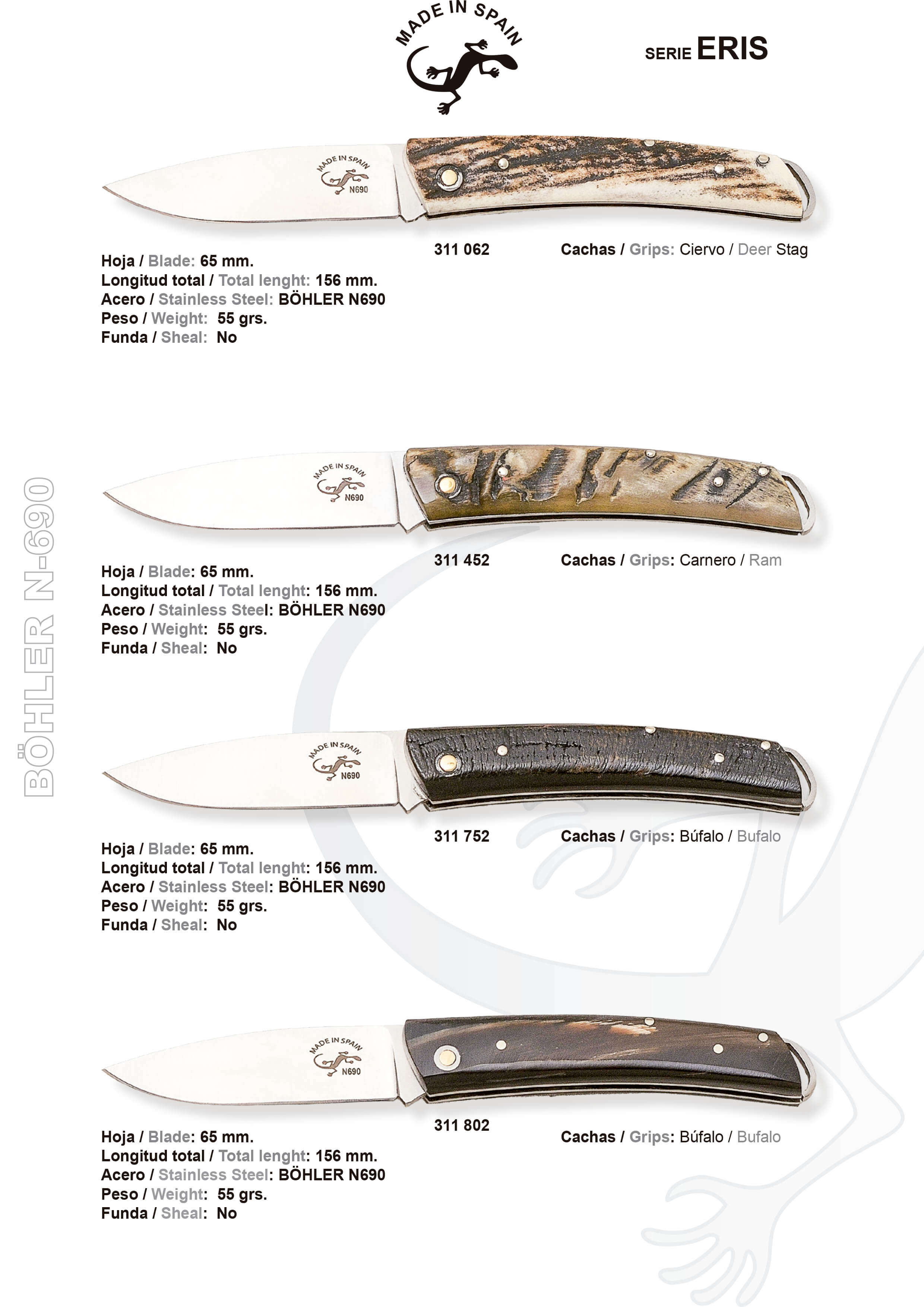 Hoja de acero Böhler N690 de 6.5 mm. Una navaja ligera y compacta con distintos acabados de mango para que encuentres la que más se adapta a ti.