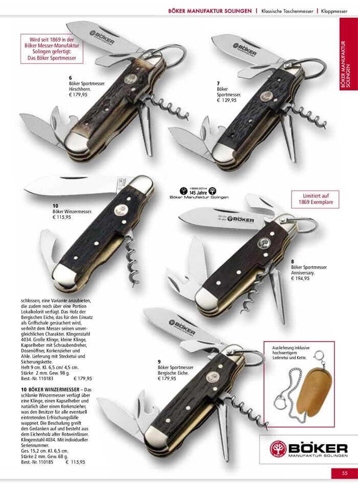 Incluye cuchilla, abridor de botellas y sacacorchos. Mango de madera de roble. Hoja de acero 4034. Con número de serie individual.