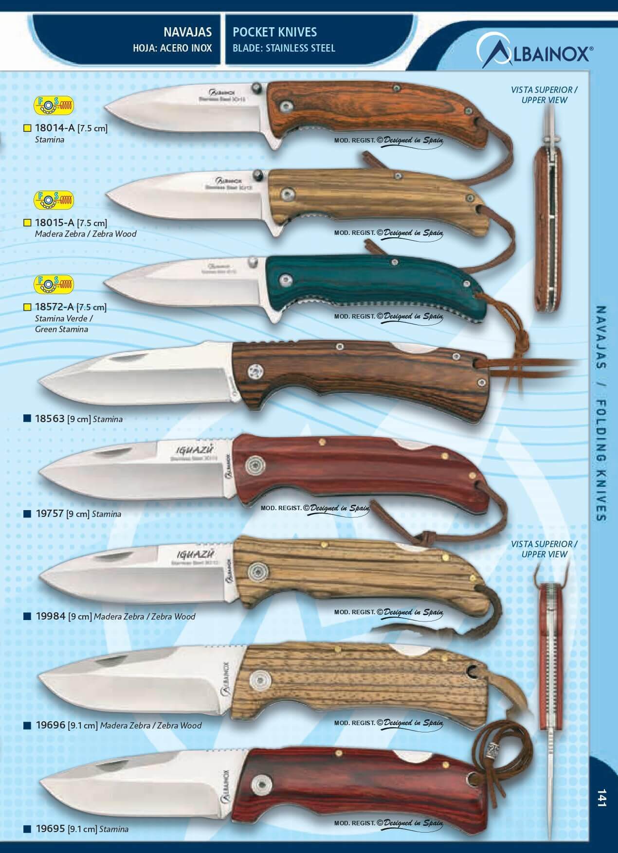 Navaja Albainox diseñada en España con mango de madera zebra, blo...