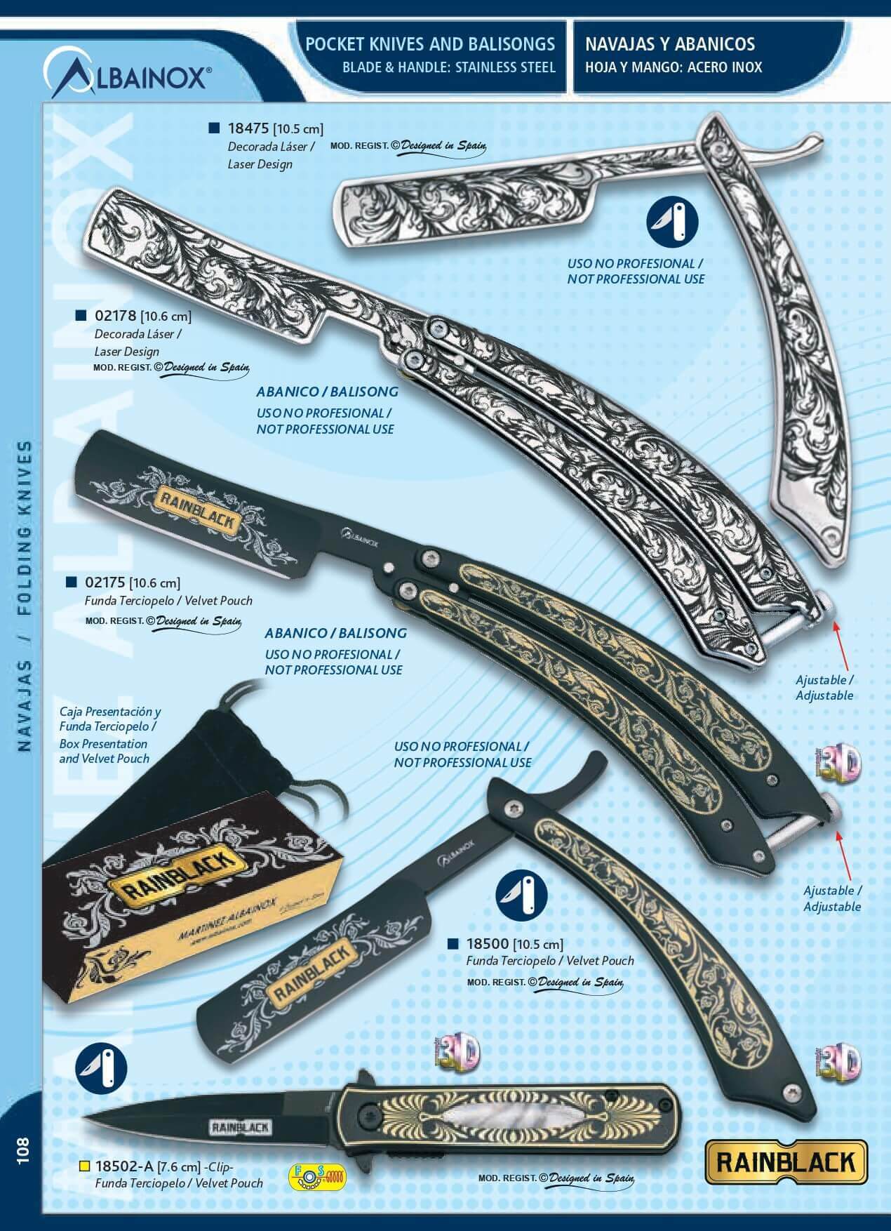 Navajas de afeitar y navajas abanico con hoja y mango de acero inoxidable
