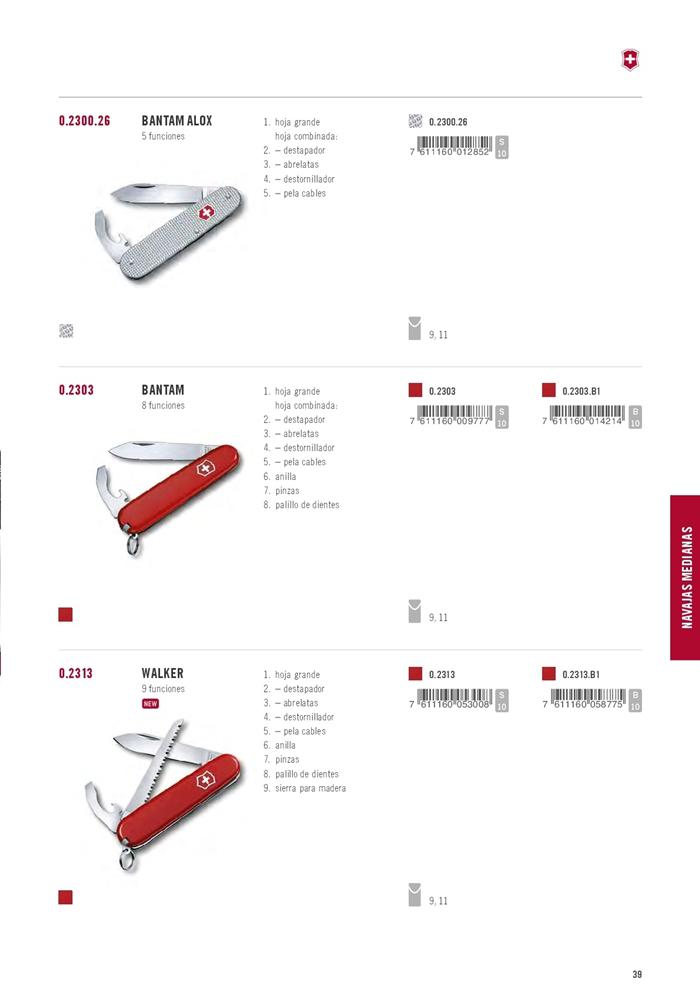 hoja grande, destapador, abrelatas, destornillador 5 mm, pela cables, anilla, palillo de dientes, pinzas