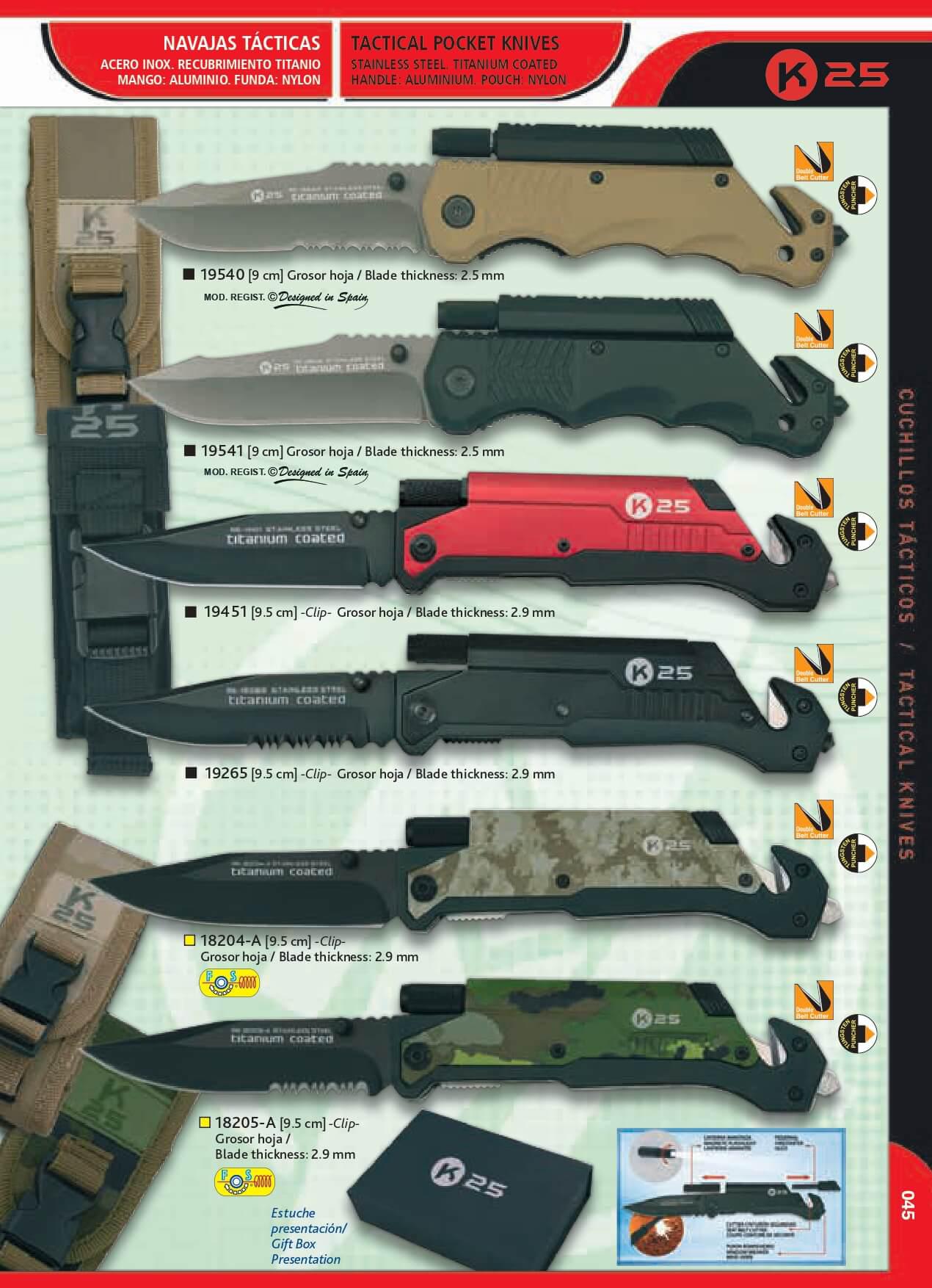 Navaja Táctica K25 negra con pedernal y linterna imantada, mango ...