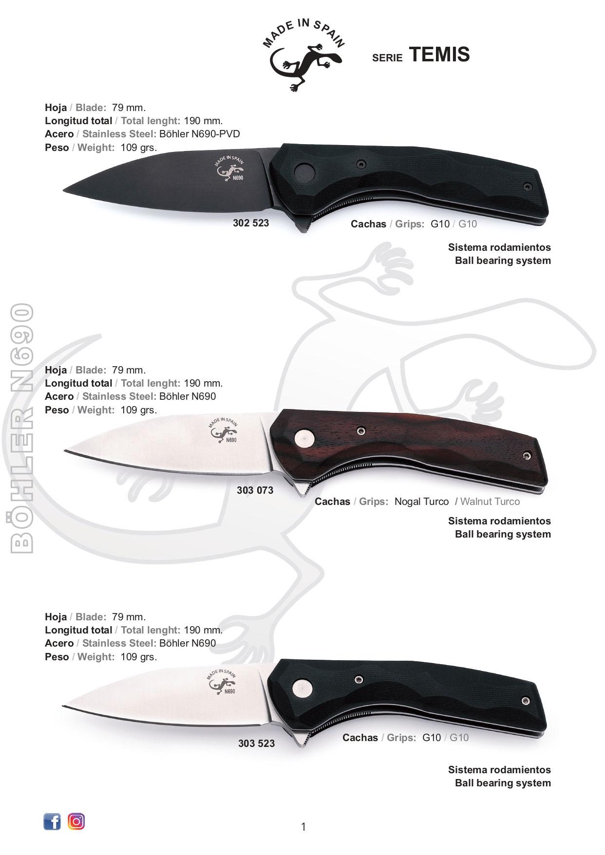 Hoja de 7.9 cm de acero Böhler N690. Cierre con sistema de rodamientos.