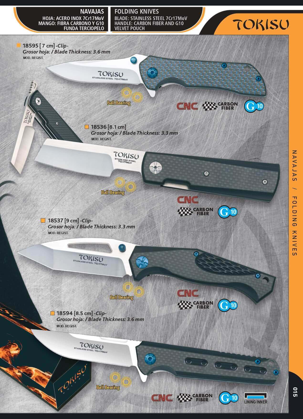 Hoja de acero inoxidable, mango de fibra de carbono y G10. Con sistema de bloqueo Ball bearing Incluye funda de terciopelo.