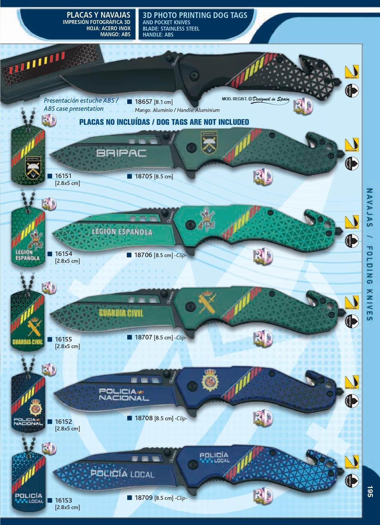 Placas y navajas con impresión fotográfica 3D, hoja de acero inoxidable y mango ABS