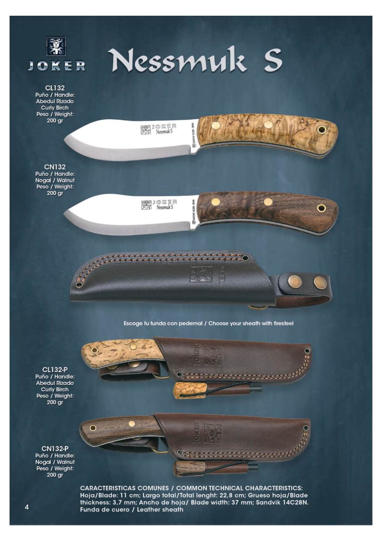 Cuchillos Joker Nessmuk Cuchillos bushcraft con mango de madera de nogal o abedul. Hoja de acero Sandvick 14C28N de 11 cm.