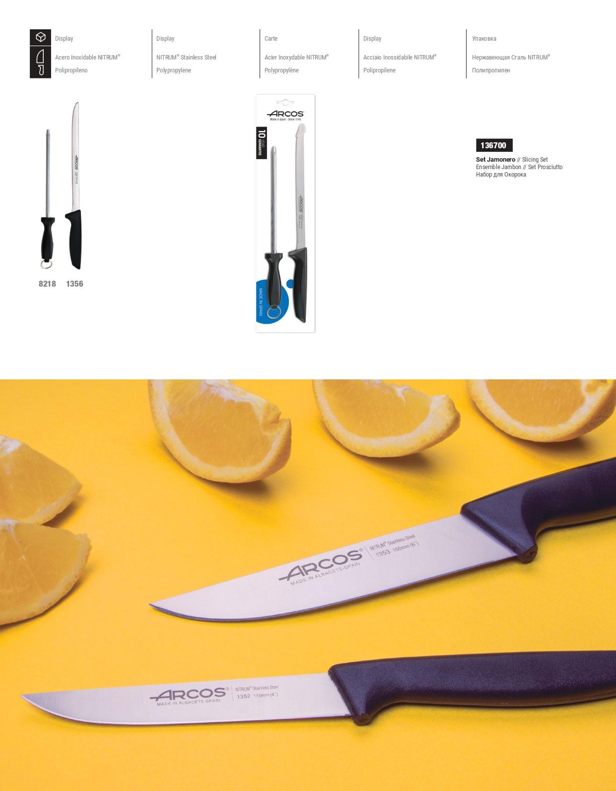 Set de cuchillo jamonero y chaira Arcos serie Niza