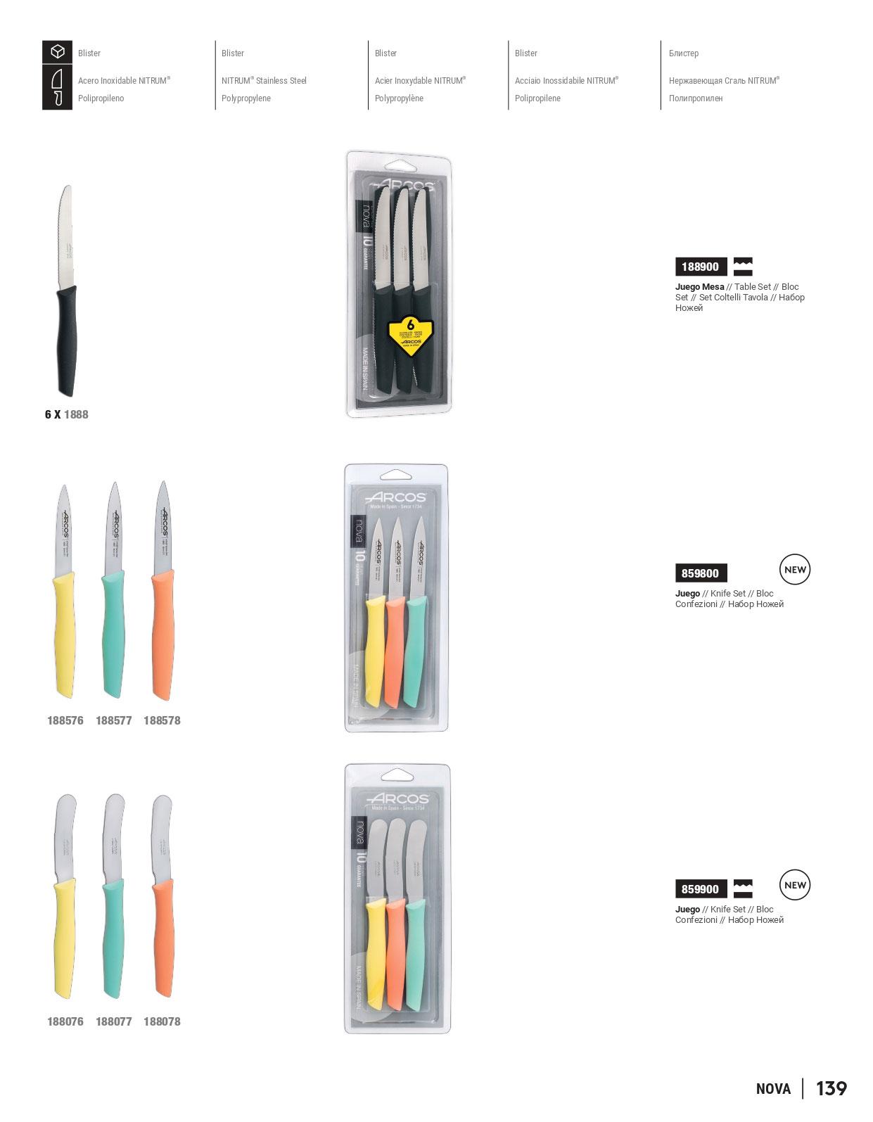 Juegos de cuchillos de mesa de distintos modelos. Hoja de acero inoxidable NITRUM. Mango de polipropileno.