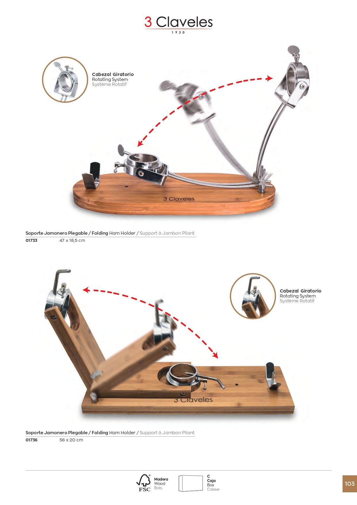 Soporte jamonero giratorio plegable de madera de bambú y acero in...