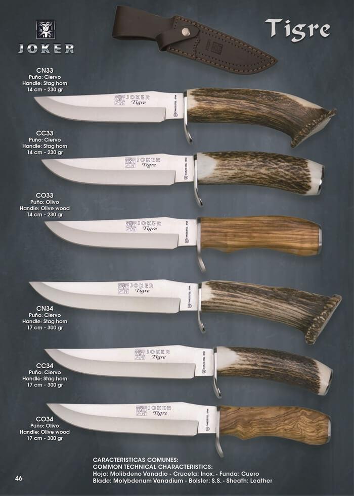 Hojas de acero Molibdeno Vanadio de 14 y 17 cm. Cruceta de acero inoxidable. Mangos de madera de olivo y asta de ciervo.
