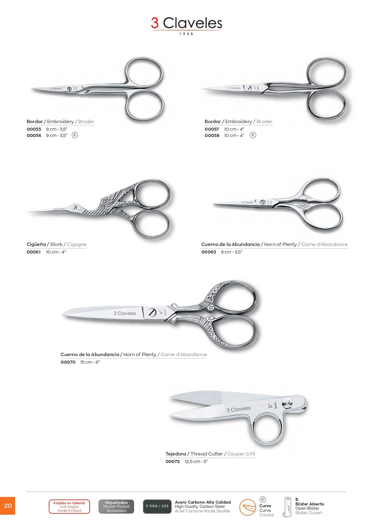 Tijeras niqueladas Bordar y Costura de Acero Carbono de alta calidad forjado en caliente