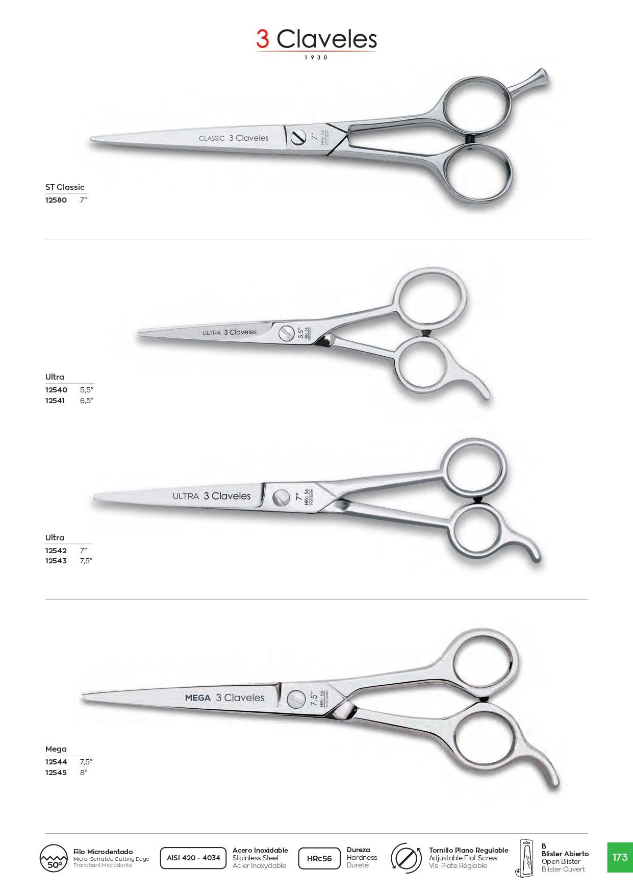 Tijera de peluqueria Ultra 6.5" con filo microdentado 3 Claveles