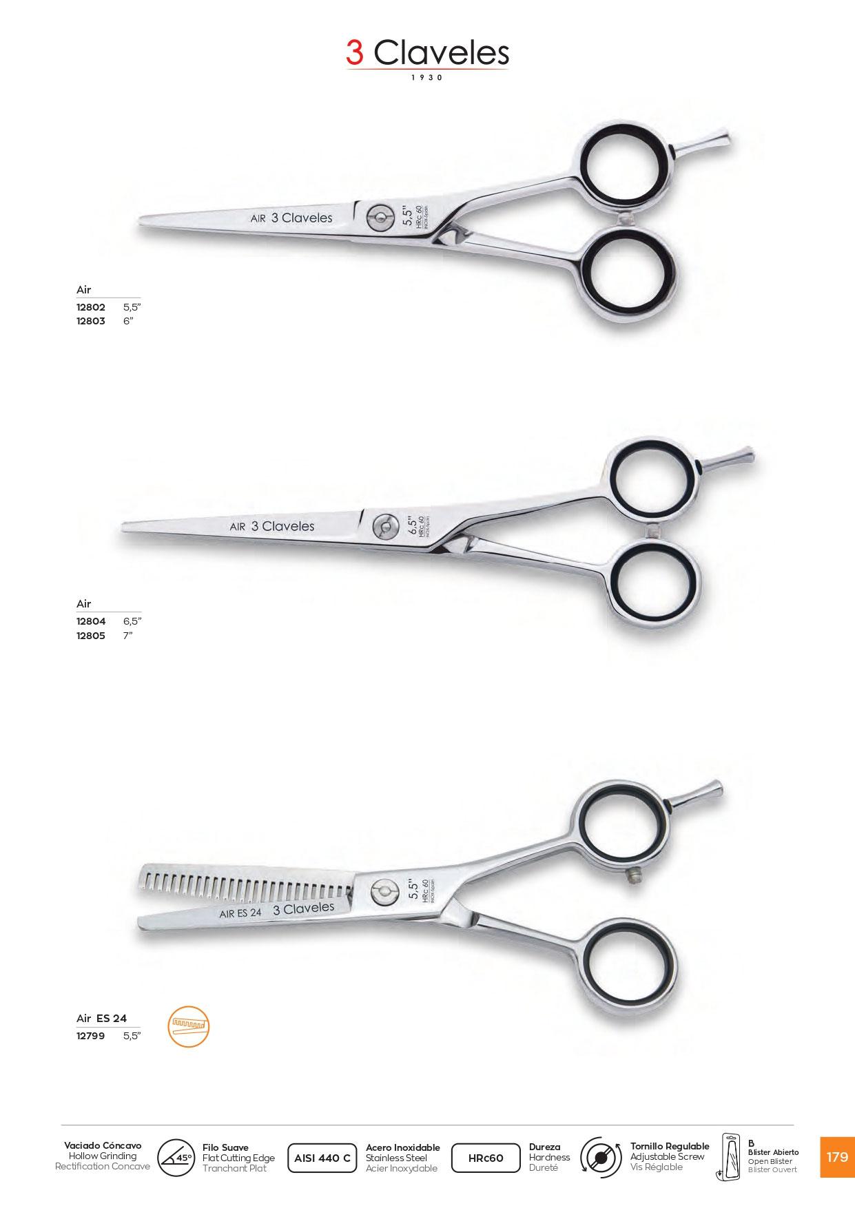 Tijera peluquero Air ES 5.5" en acero inoxidable 3 Claveles