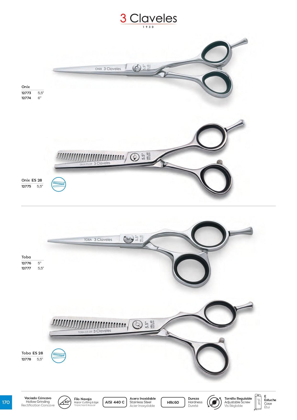 Tijera de peluqueria Onix ES28 5.5" con filo navaja 3 Claveles