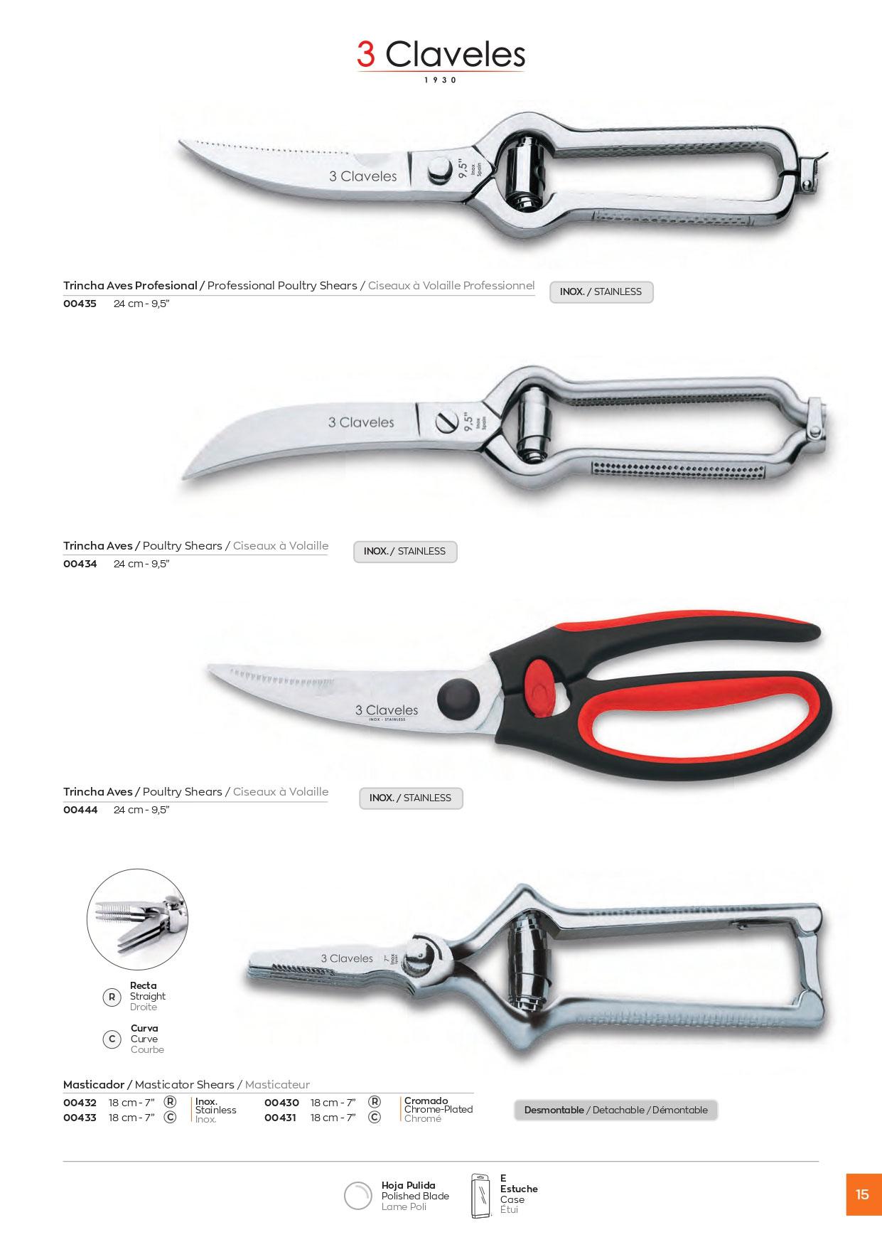 Tijera trincha aves 3 Claveles de 24 cm pulido