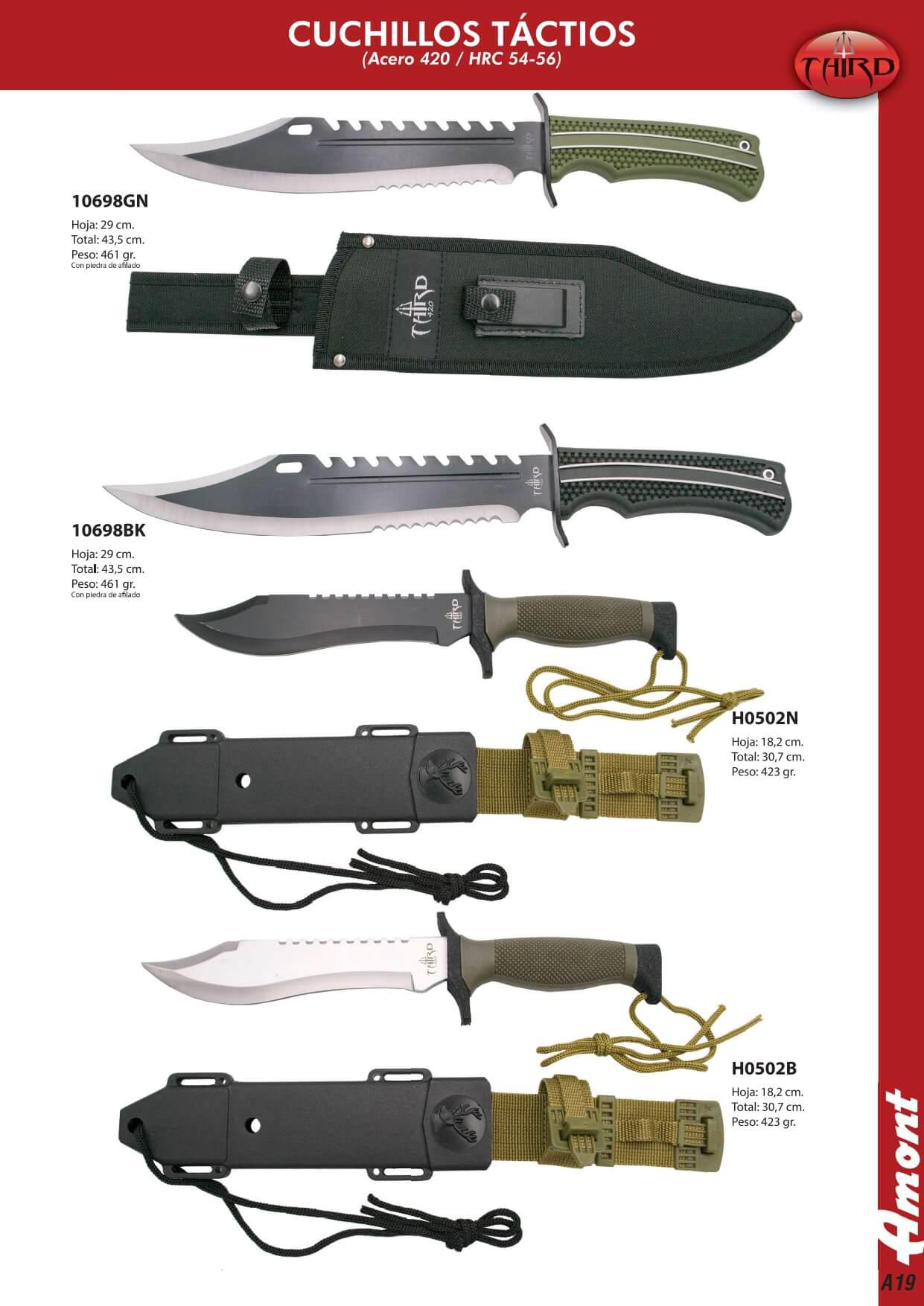 Couteaux militaires avec lame en acier 420 (HRc 54-56). Poignées en ABS.