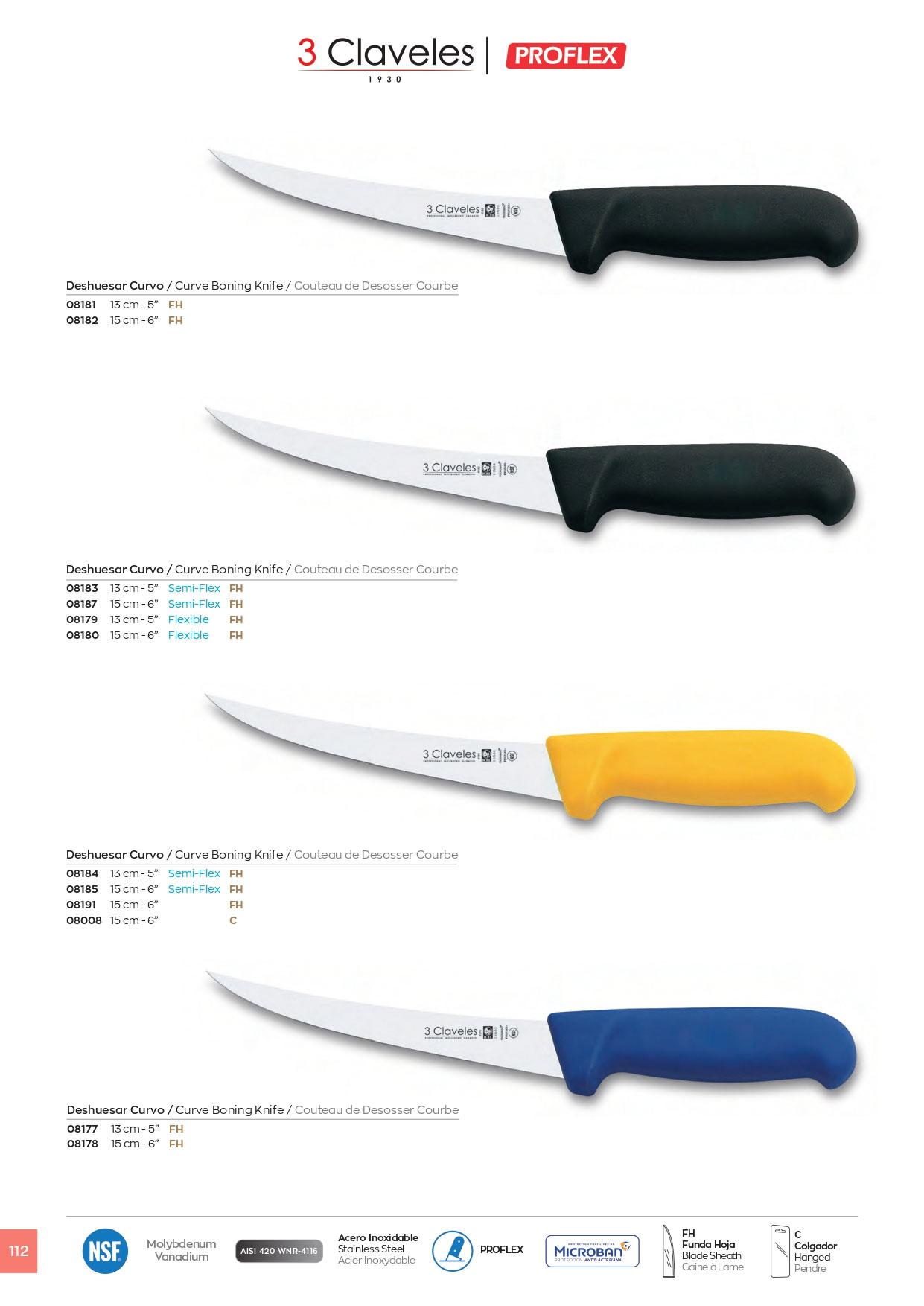 Couteaux professionnels. Désosser Boucher. Lame en acier inoxydable. Polypropylène poignée.
