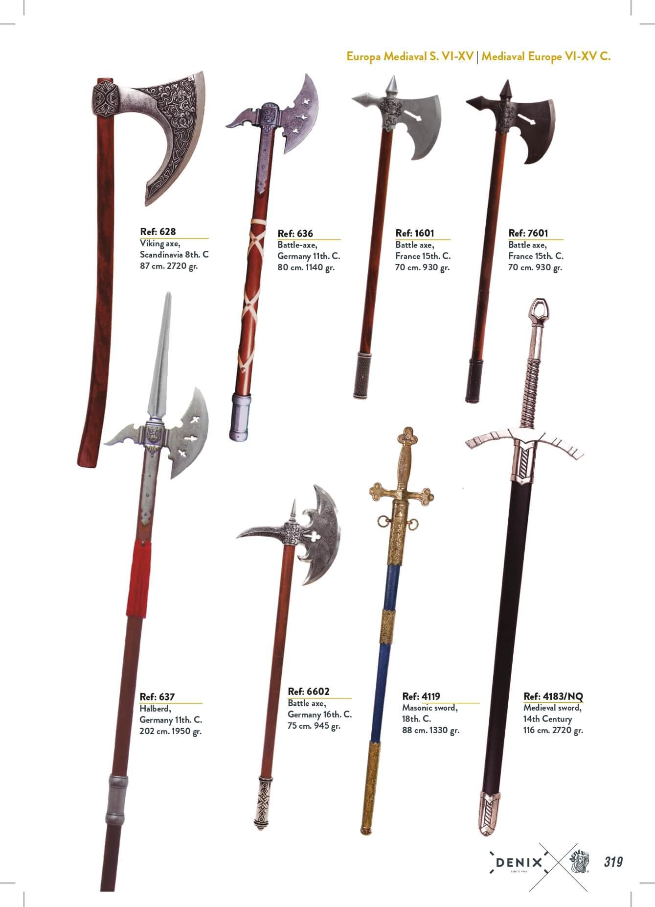 Hallebardes et épées hache Europe médiévale S. VI-XV