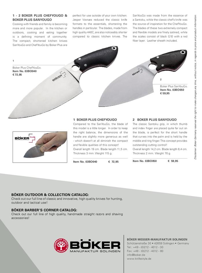 Grâce à la série SnacPac Böker présente une collection de Voyage à qui incorpore un Voyage fixé avec une cuillère, fourchette, couteau et même salières et poivrières. Cette série comprend également un couteau de Voyage SanYouGo, inspiré par les couteaux Santoku et un couteau de chefs inspirés ChefYouGo couteaux classique.