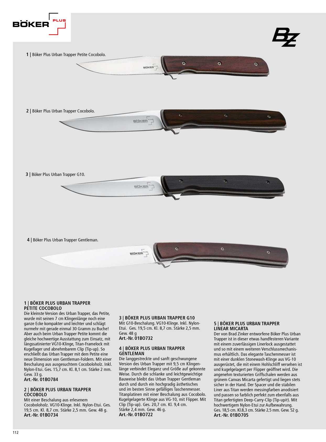 Couteaux de poche Urban Trapper. Conçu par Brad Zinker.