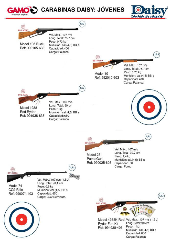 Longueur totale: 75,7 cm. Poids: 0,73 kg. Munitions: chaux. (4.5) BB s. Capacité: 400. Chargement: Levier.