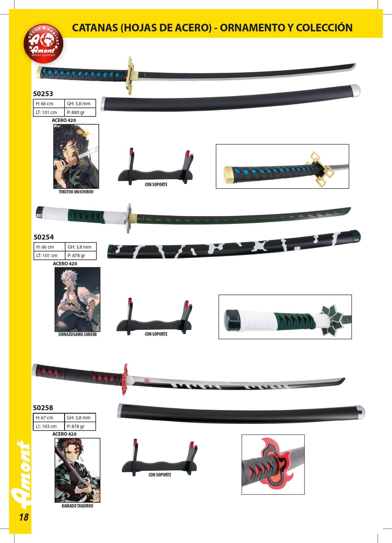 Katanas Demon SlayerLongueur de la lame : 67 cm. Longueur totale : 101 cm. - S0253 : Tokitou Muichirou - S0254 : Shinazugawa Sanemi