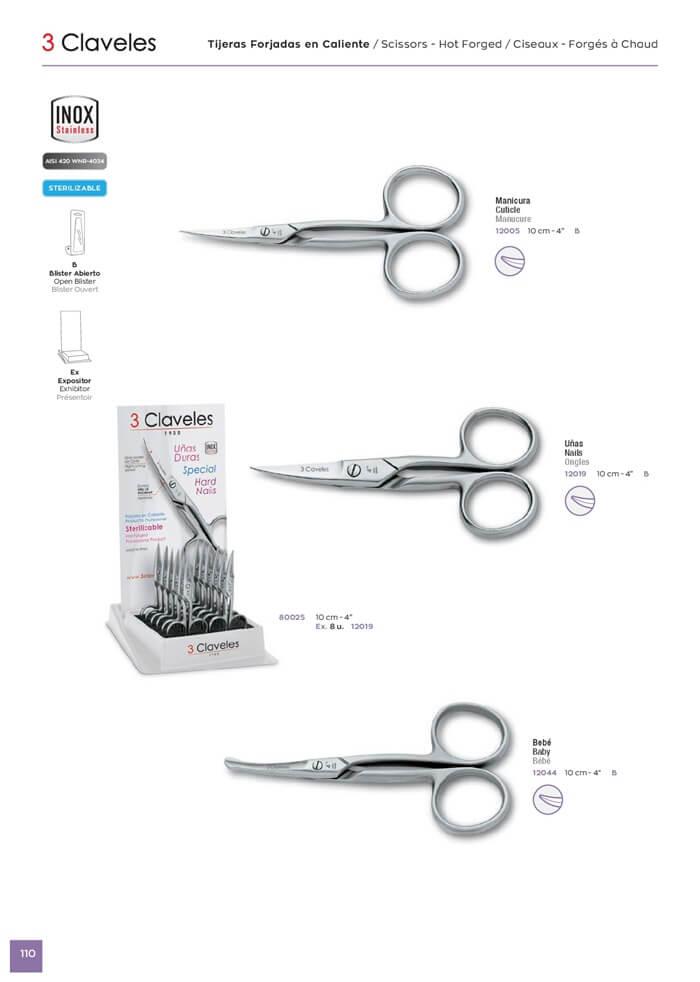 Ciseaux bébé courbés 10 cm en acier inoxydable forgé 3 Claveles