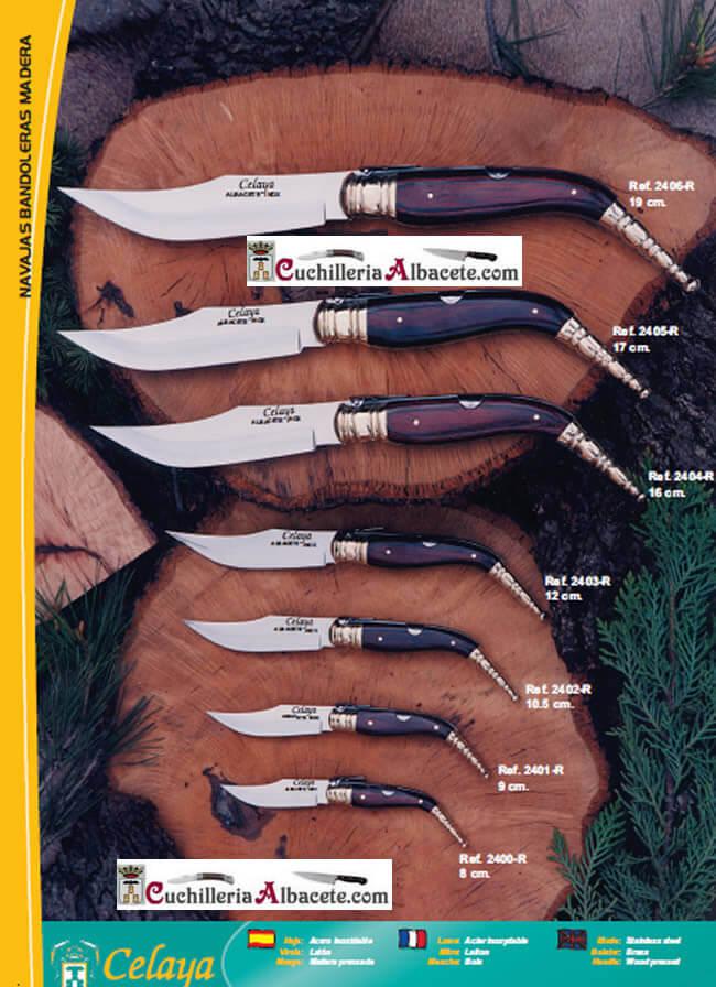 Couteau de poche classique avec lame en acier inoxydable. Manche en bois rouge et virole en laiton. Verrou à cliquet (6 ressorts).