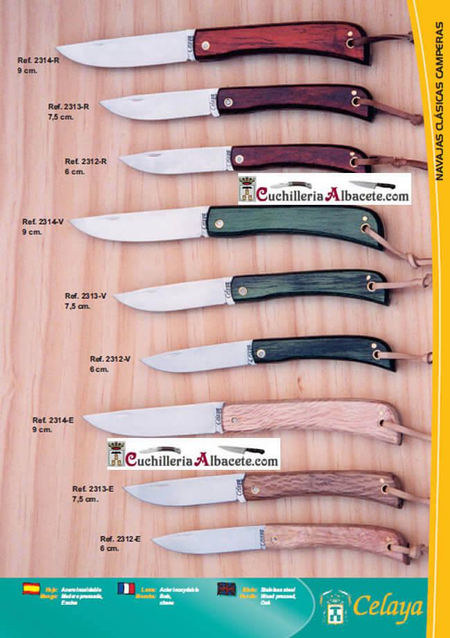 Couteaux de poche "camperas" avec lame en acier inoxydable. Poignées en bois pressé ou en bois de chêne.