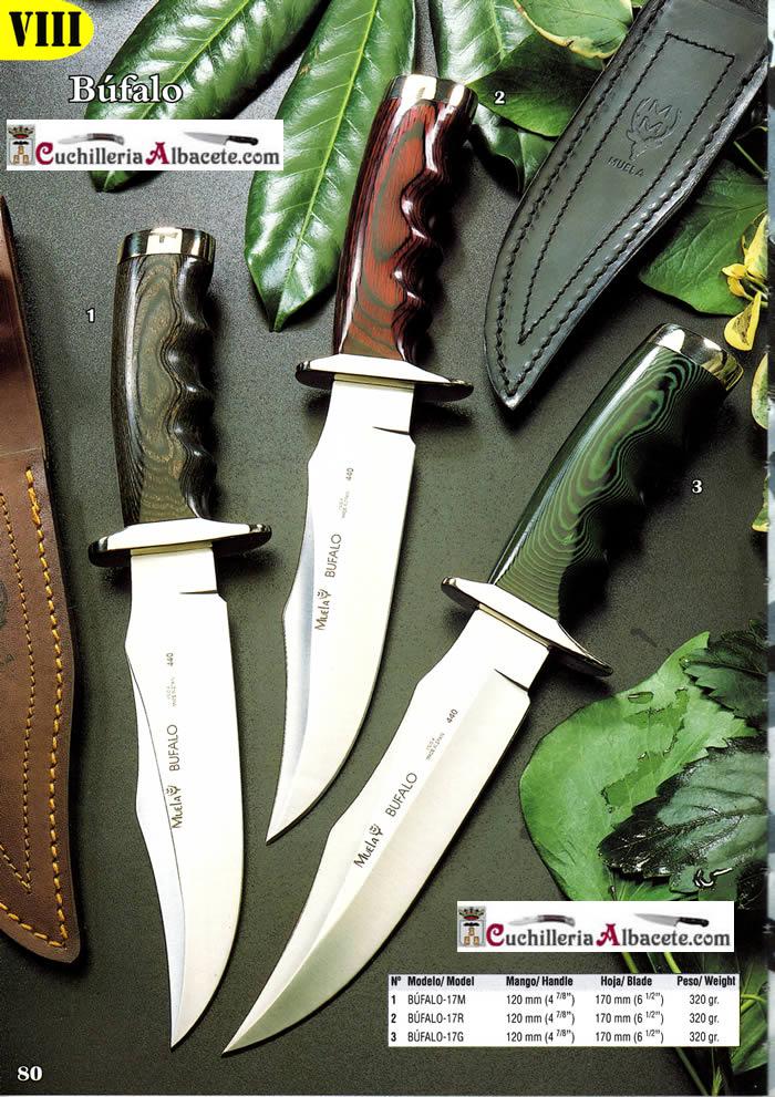 Couteau de chasse Muela Bufalo avec manche en bois noir et maille...