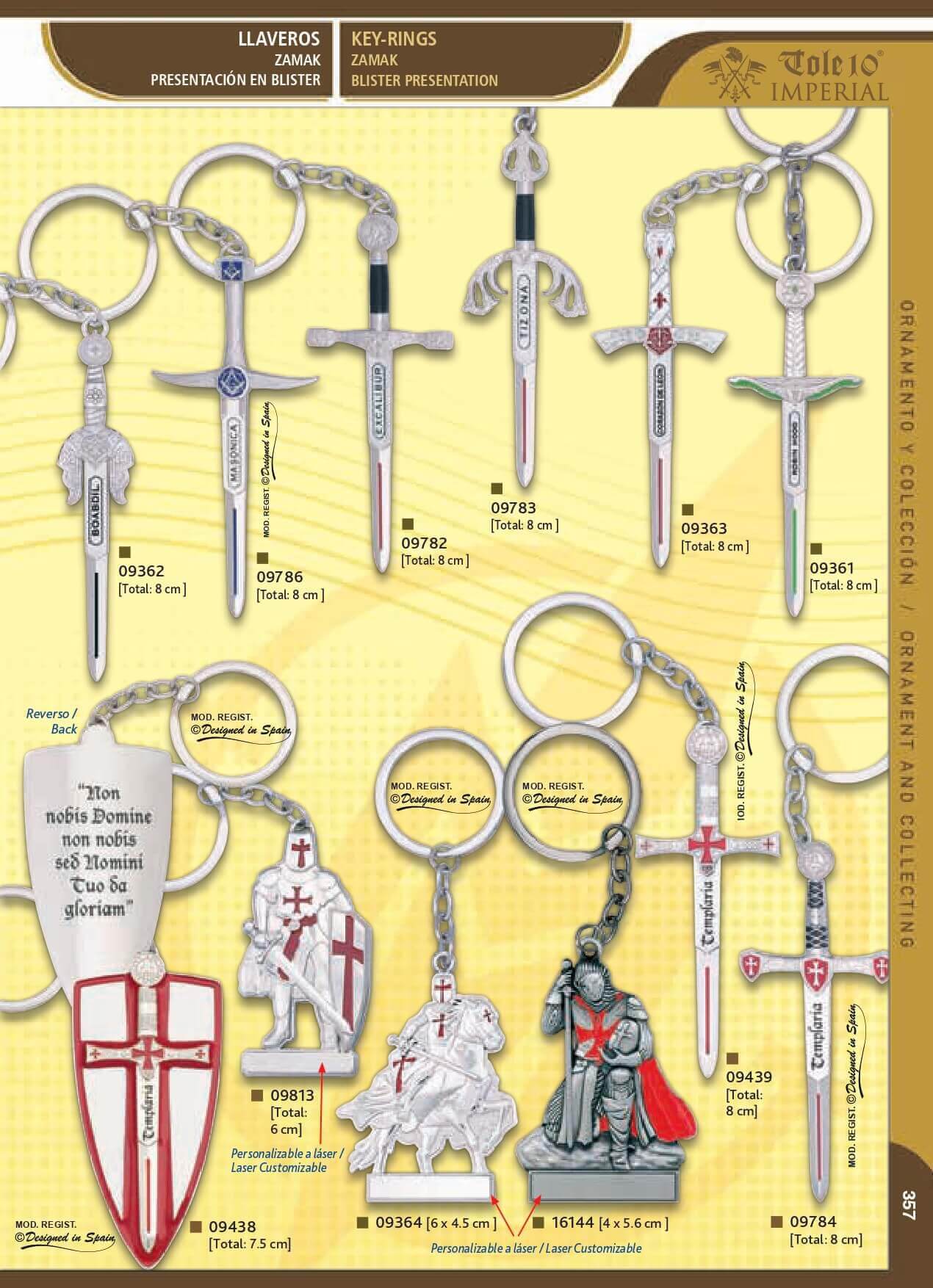 Collection de porte-clés de la marque TOLE10 IMPERIAL en zamak.