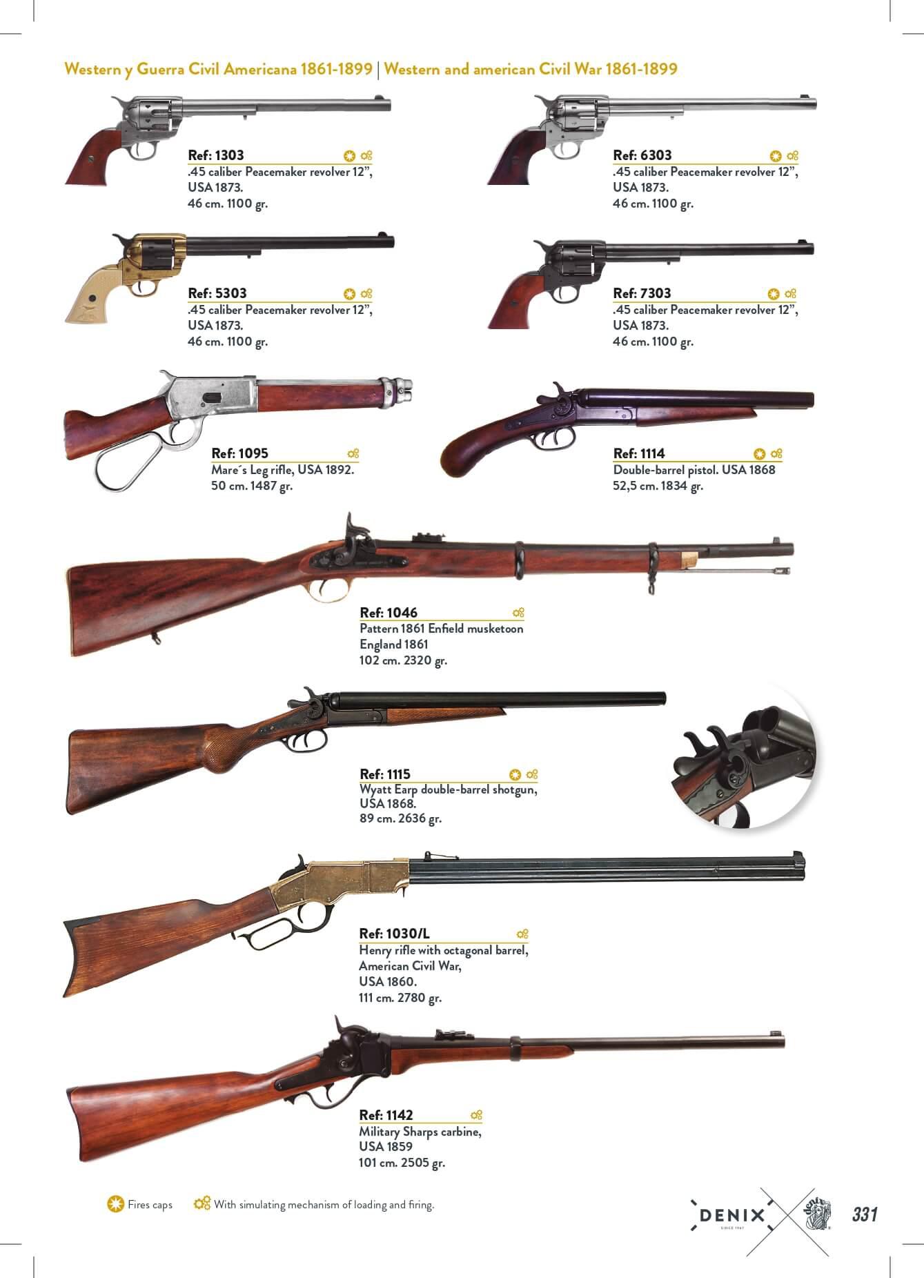 Revolvers et mousquetons avec mécanisme de simulation de chargement et de tir.