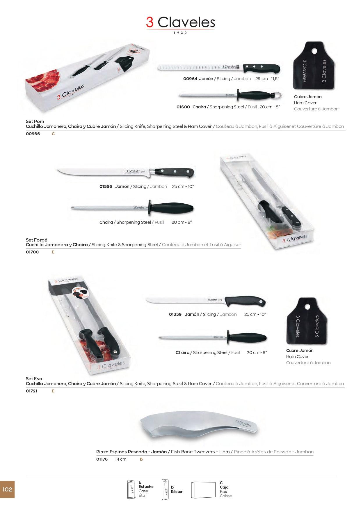 1721 définir EVO. Couteau à jambon, aiguiseur et couvercle à jambon.