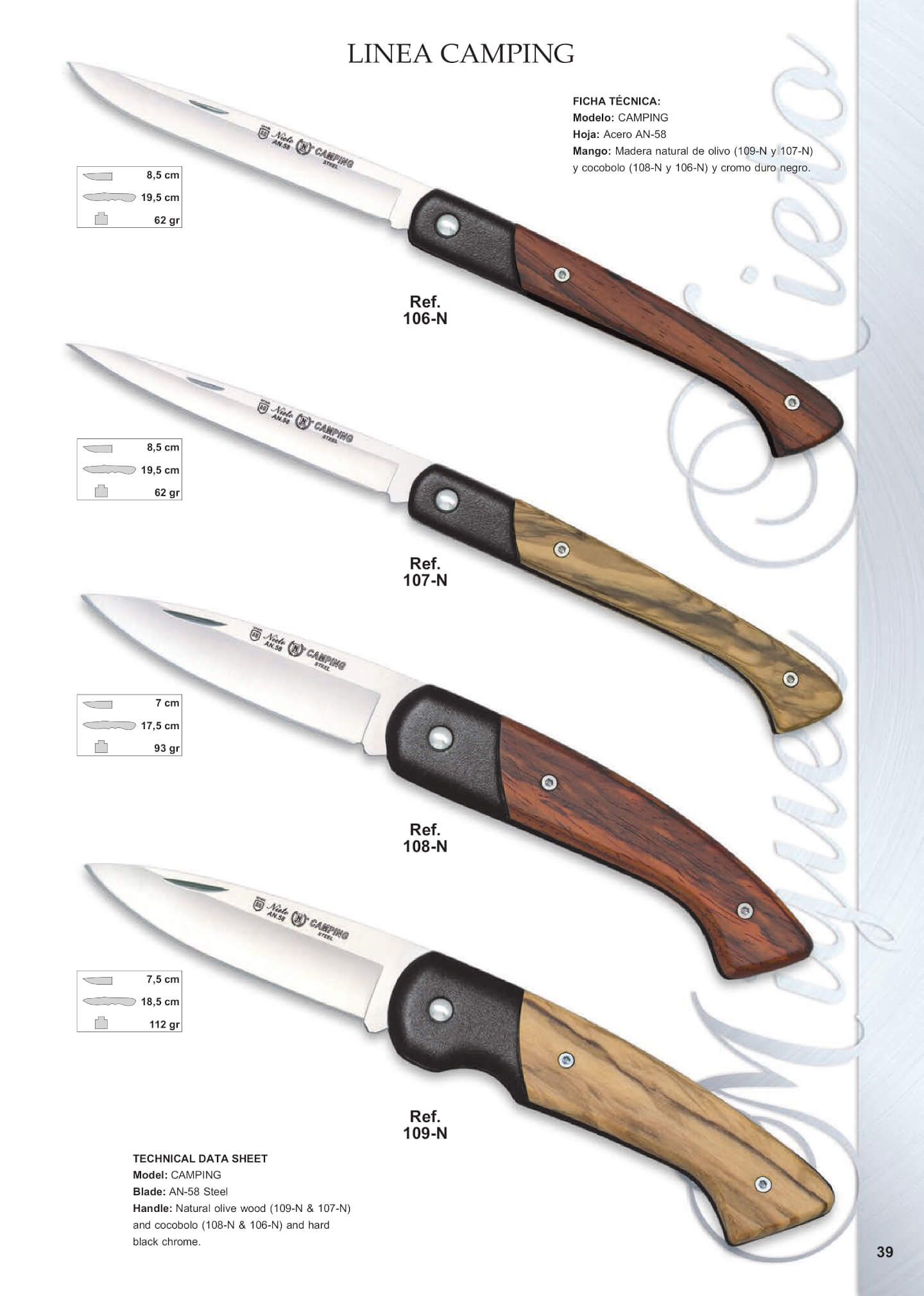 AN58 Stahlklinge, natürlicher Olivenholzgriff oder Cocobolo und Hartchrom.