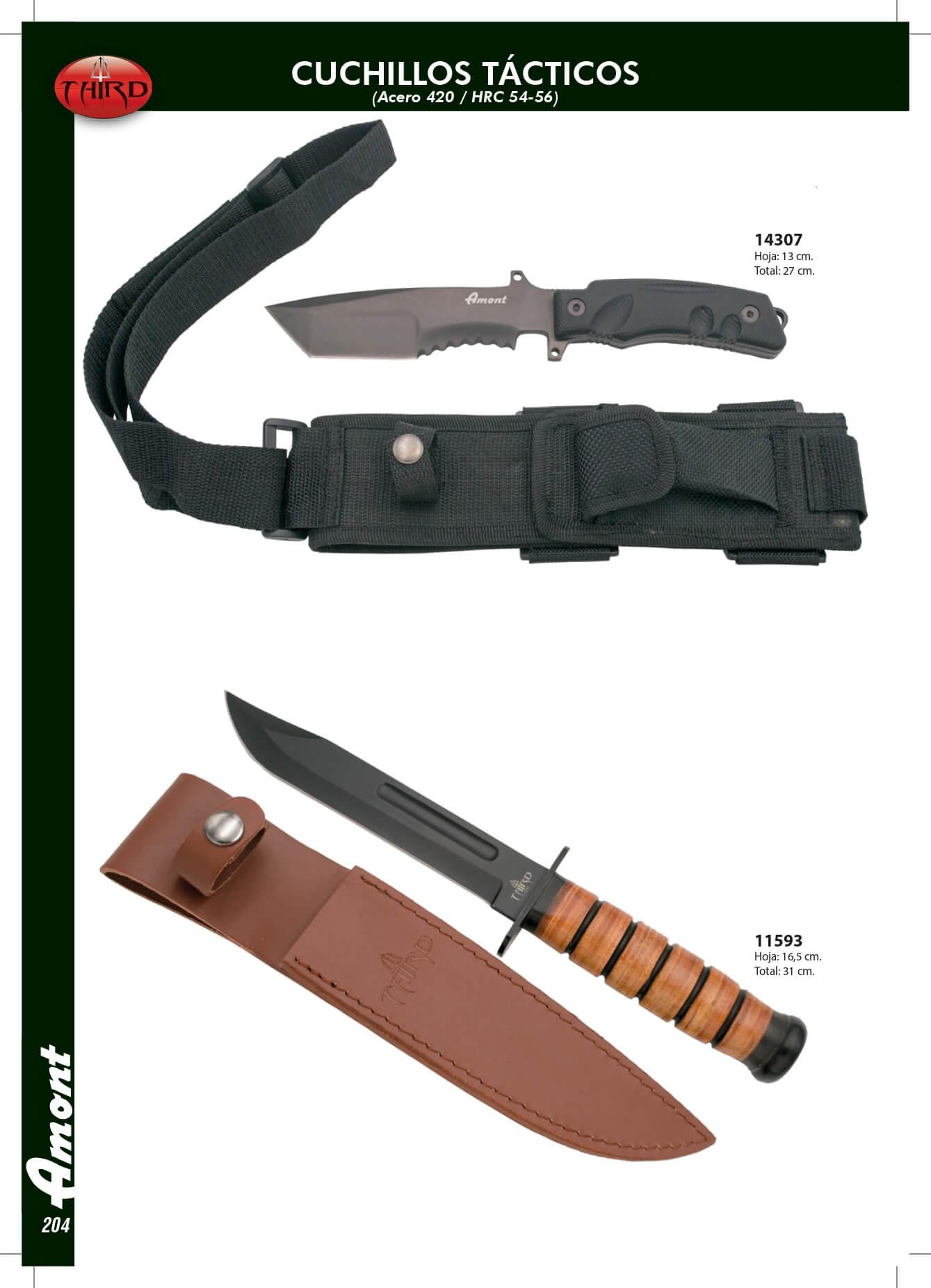 Taktisches Messer. Stahl 420. HRC 54-56. 14307 Blattlänge: 13 cm. Gesamtlänge: 27 cm. 11593 Klingenlänge: 16,5 cm. Gesamtlänge: 31 cm.