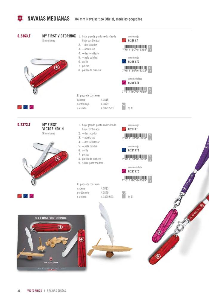 Große Platte: normal oder mit abgerundeter Spitze, Holzsäge, Nagelfeile mit Nagelreiniger, Korkenzieher, Dosenöffner mit kleinem Schraubendreher, Flaschenöffner mit Klinge, Schraubendreher, Abisolierzange, Ahle, Zahnstocher, Pinzette und verschiedene Anwendungen kombiniert. In Packungen zu 10 Stück.