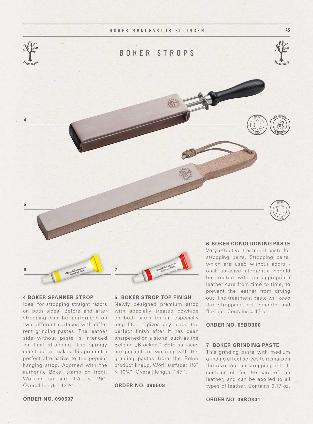 Der Böker Abziehriemen Top Finish ist für eine besonders lange Lebensdauer auf beiden Seiten mit geschmeidigem Leder bezogen. Er bringt das perfekte Finish auf jede Klinge, nachdem das Messer auf einem Stein, wie zum Beispiel dem Belgischen Brocken, geschärft worden ist. Beide Flächen eignen sich perfekt für die Bearbeitung mit den Schleifpasten aus dem Böker Sortiment. Arbeitsfläche 4 x 26 cm.