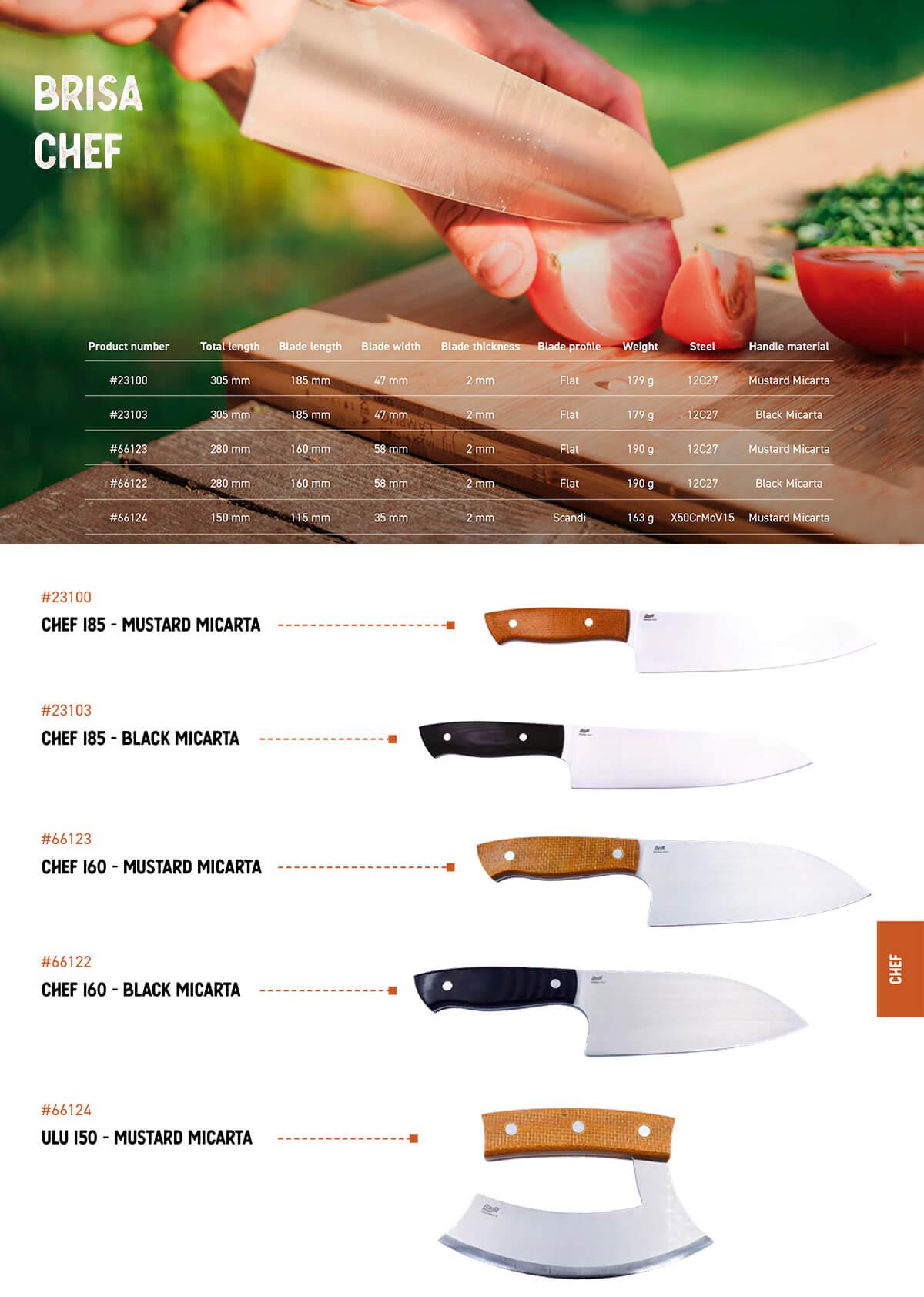 Dies sind Küchenmesser mit japanischem Einfluss und der Stärke der Bushcraft- und Jagdmesser der Brisa-Linie.