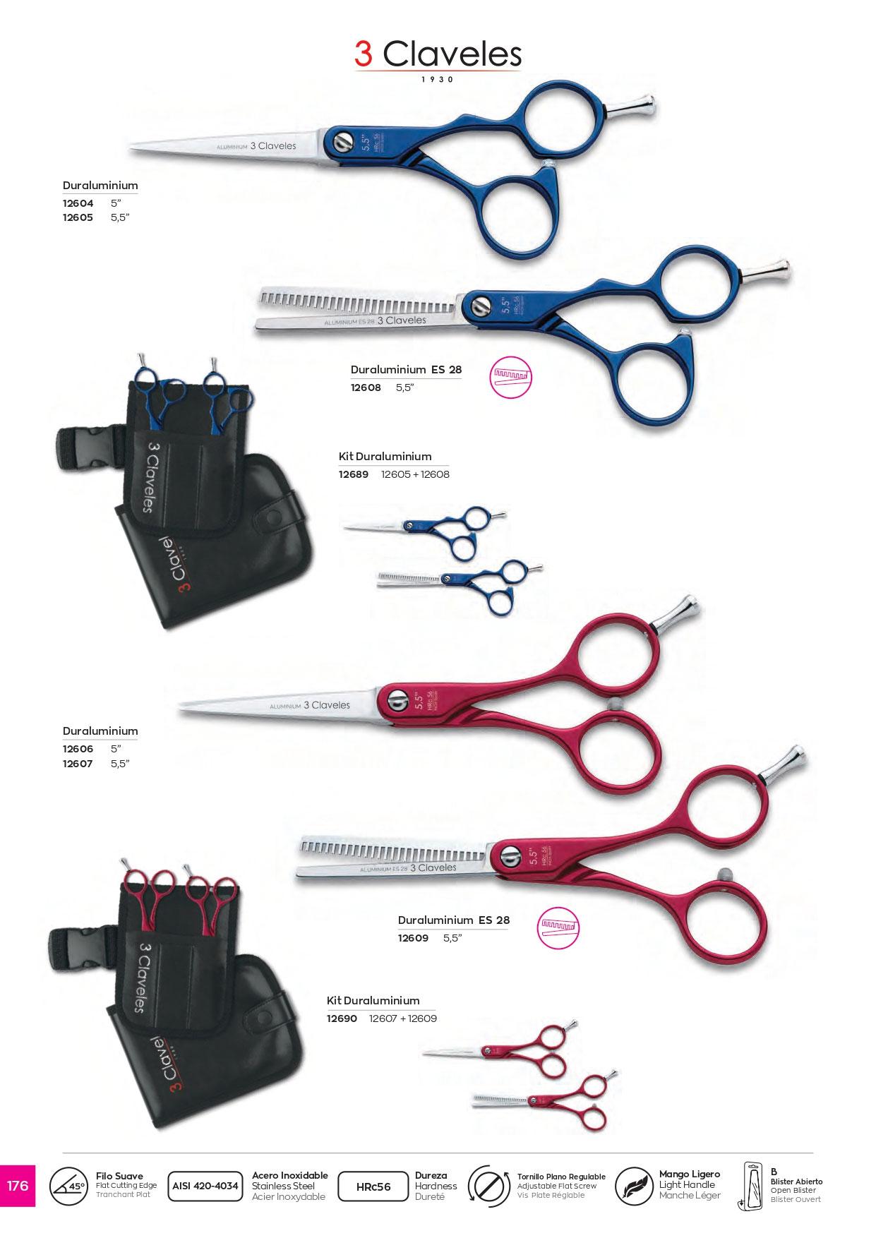 5,5" blaues Duraluminium-Friseurset mit Soft Edge 3 Claveles
