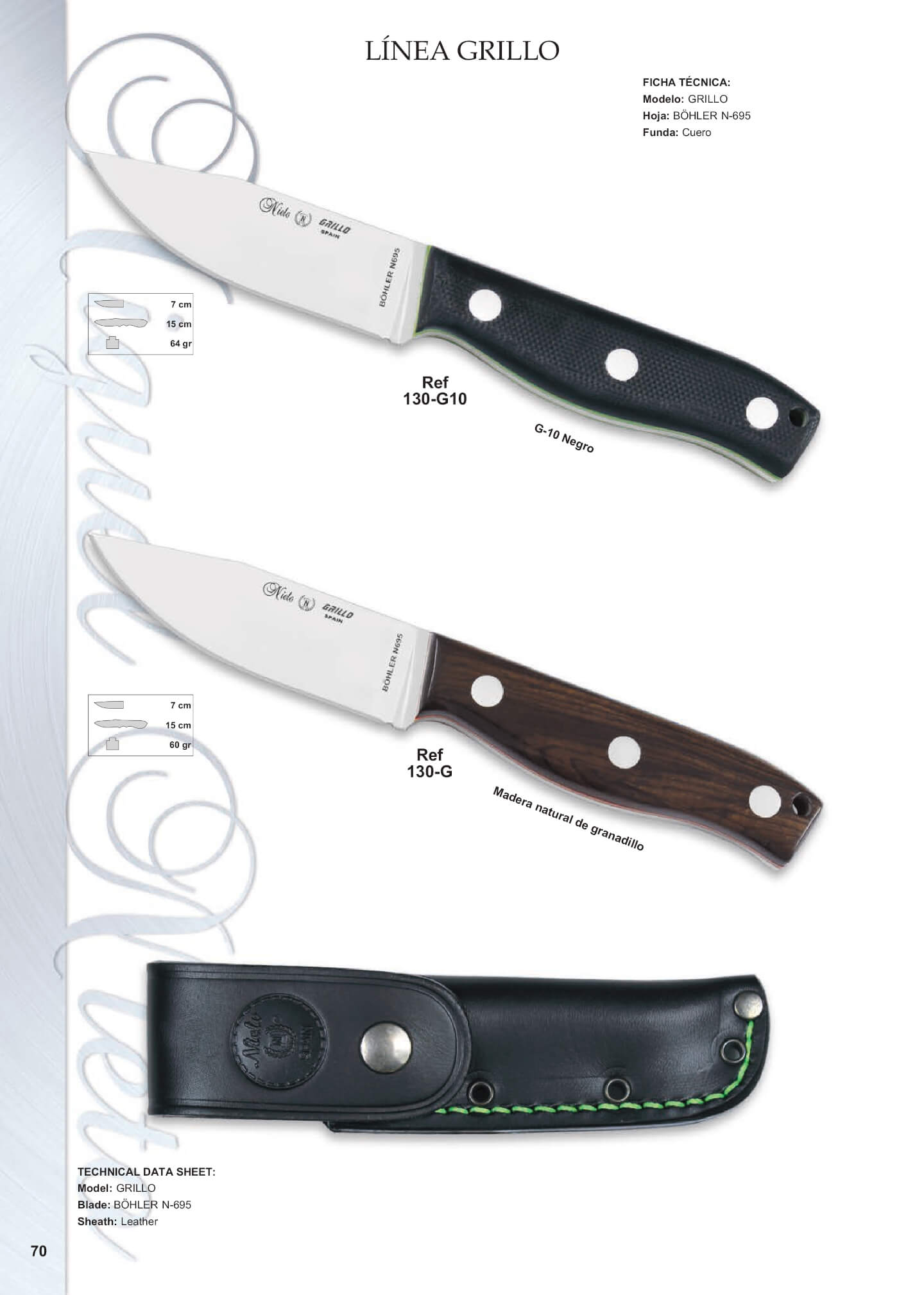 Nackenmesser Nieto Grillo . Böhler N695 Stahlklinge 7 cm. Natürlicher Granadillo Holzgriff oder Schwarz G10. Gesamtlänge 14,7 cm. Gewicht: 65 gr. Inklusive Ledertasche.